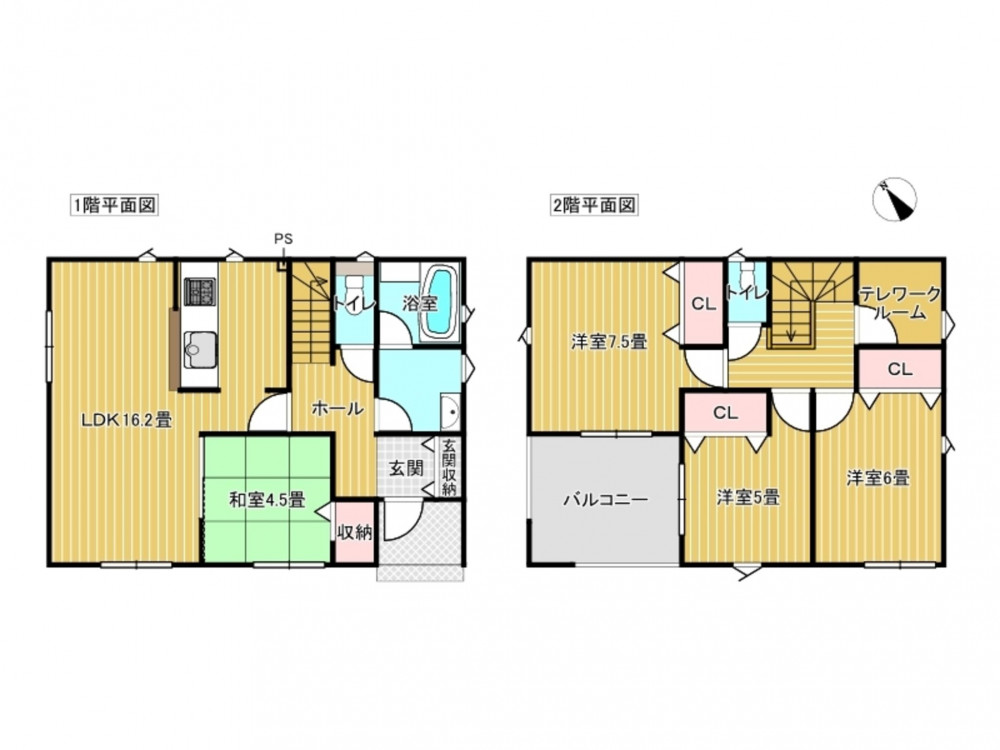 - システムキッチン、IHクッキングヒーター、オール電化、洗浄便座、浴室乾燥機、複層ガラス、モニタ付インターホン、駐車場3台分、床下収納、トイレ2箇所
